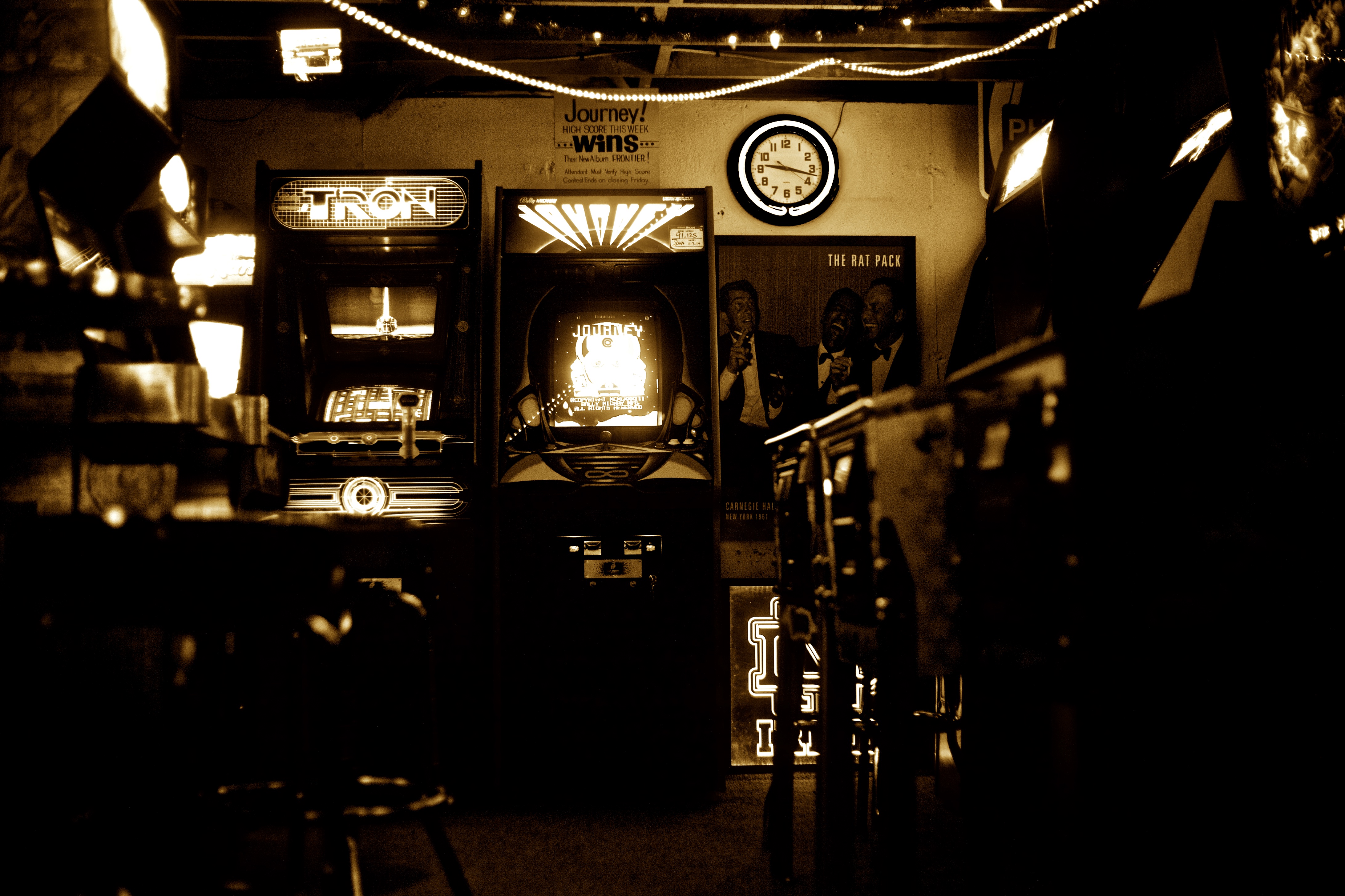 The new photos shift this section away from old placeholder live shots and into a visual language that matches the band: games, glow, black-and-white motion, and synth-rock atmosphere.